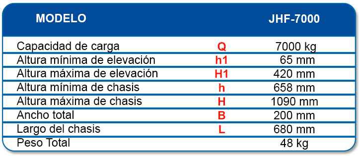 JHF-7000 Gato hidráulico 7 Toneladas perfil bajo para Montacargas