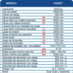 | Largo de horquillas |