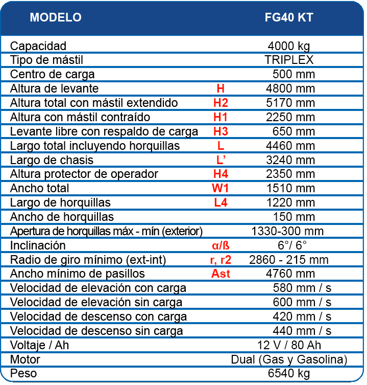 | Largo de horquillas |