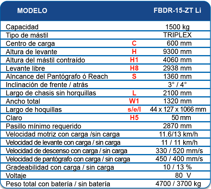 • Ideal para pasillos angostos: requiere solo 2.93 m para maniobrar con tarimas estándar.